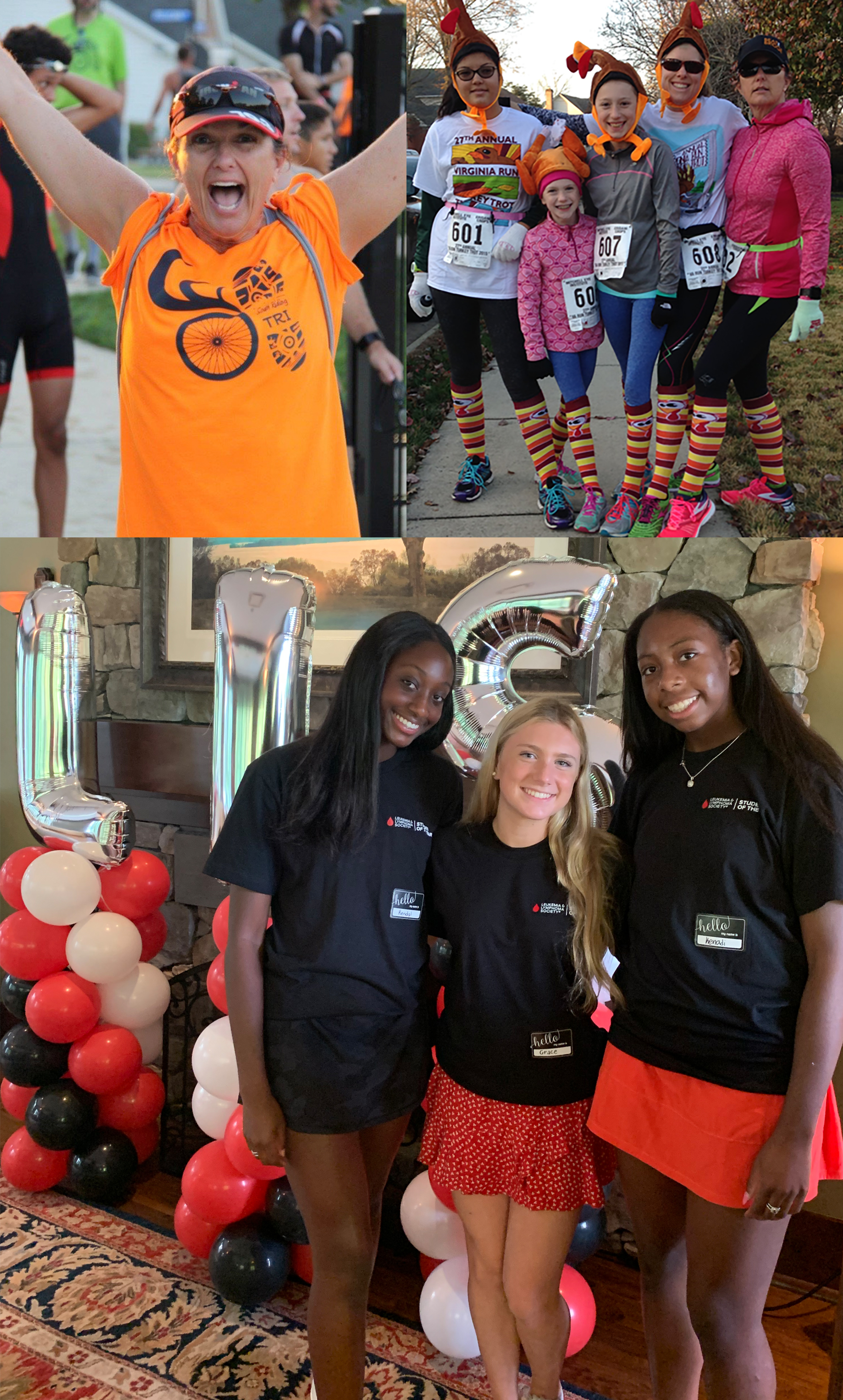 Featured in the top two photos is my Auntie Meggan, my "why" behind my participation in LLS. The bottom photo shows me and my two co-leaders, Kendal and Kenadi. We work together to manage our fantastic team of 20!