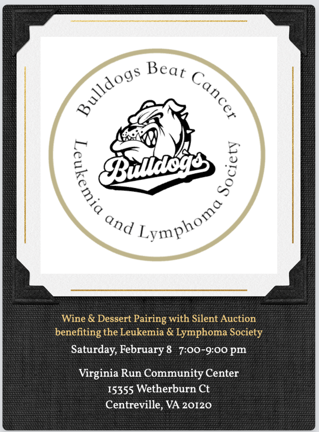 Reserve your tickets for our wine and dessert pairing on 2/8. Join us at the Virginia Run Community Center as we finish our silent auction in style!