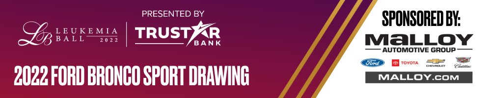 For every $100 donation**, you will be entered to win a brand new 2022 Ford Bronco Sport vehicle sponsored by Malloy Auto Group. The winner will be pulled on June 18, 2022 at the Leukemia Ball! You do not need to be present to win. Winner will be notified by Monday, June 20th.